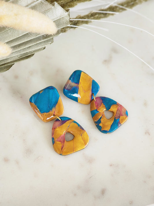 Blue & Gold Aztec Studs | Handmade Polymer Clay Earrings