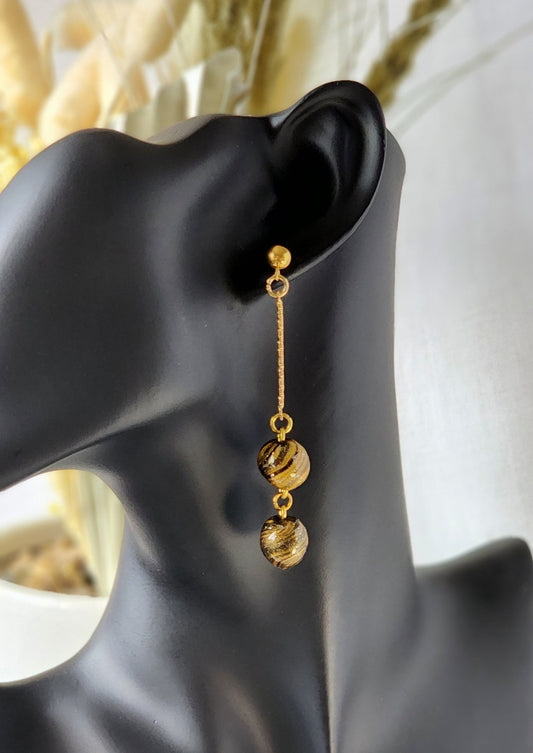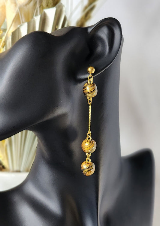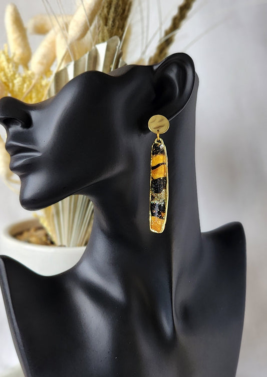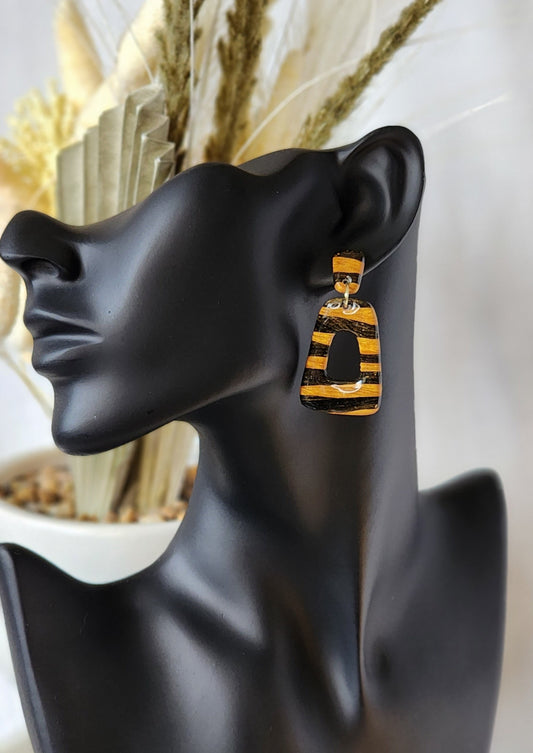 Black and Gold Bumblebee Dangles | Handmade Polymer Clay Earrings