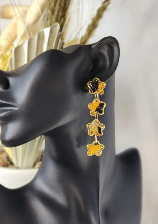 Black and Gold Shooting Star Dangles | Handmade Polymer Clay Earrings