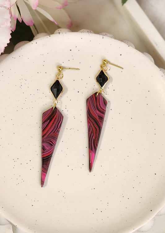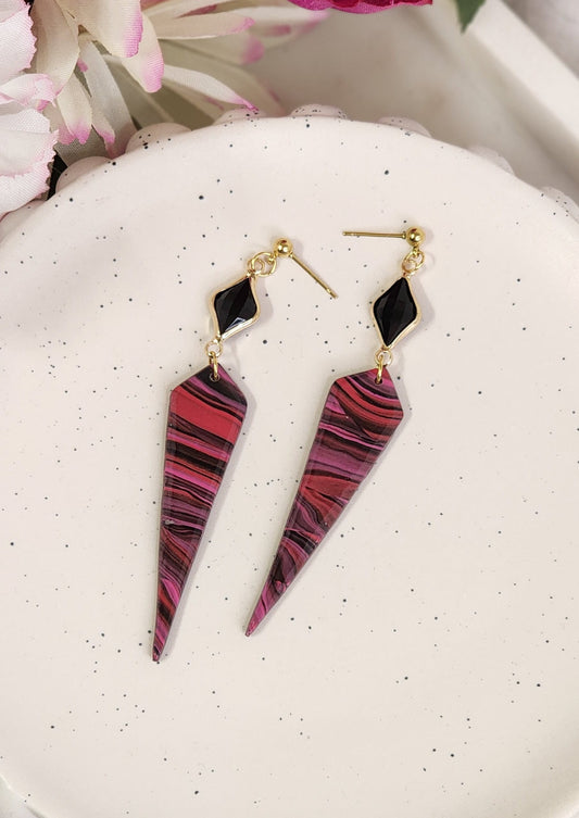 Pink Swirl Spike Dangles 2 | Handmade Polymer Clay Earrings